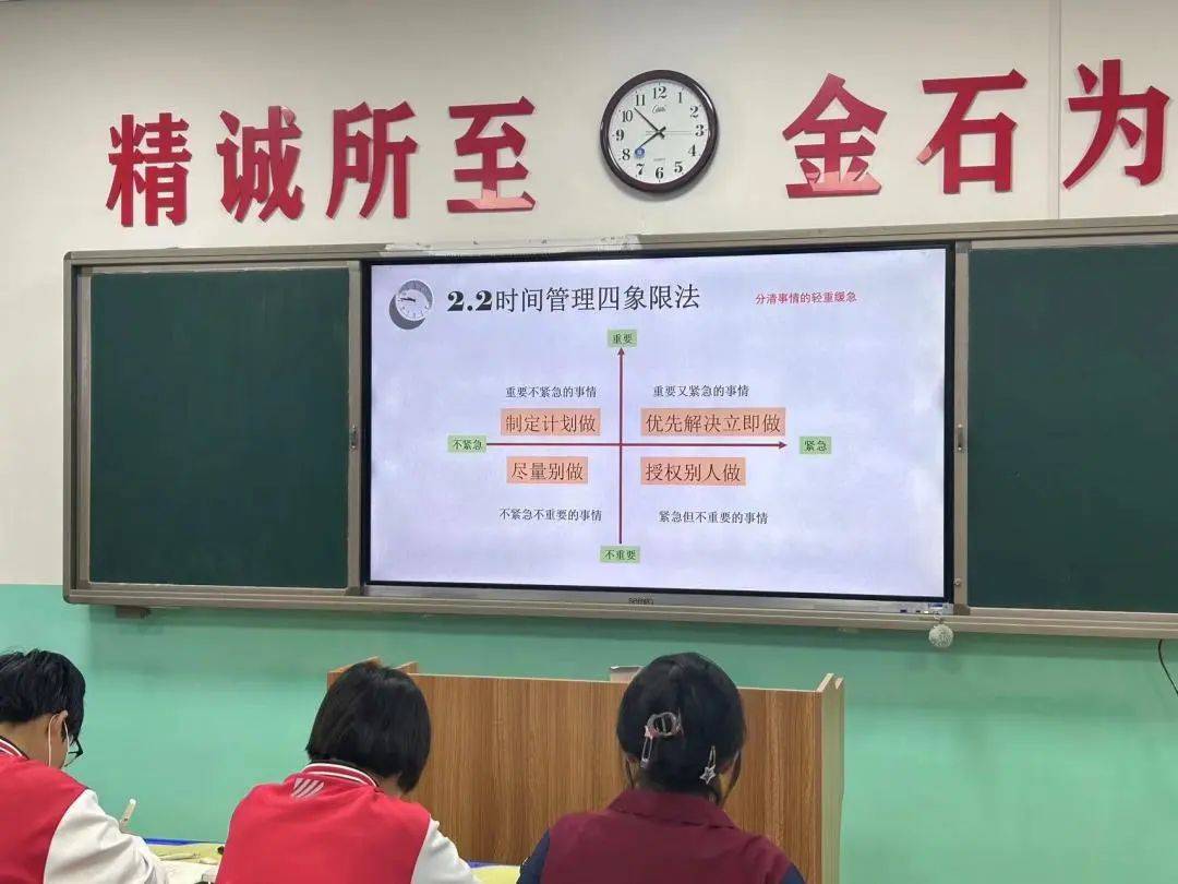 金石中学一直设有心理健康教育课,从新生入学后的《新学期 心助力》使学生在新的学期学会主动求助,成为更强大的自己;《做好时间管理,高效学习》引导学生们反思自己的自我管理能力,增强自控力培养,做好时间管理,成为一个高效学习的人,让自己的学习和生活更丰富有趣又高效;《亲子沟通,与父母和谐相处》使孩子们理解父母,学会亲子之间的平等沟通。